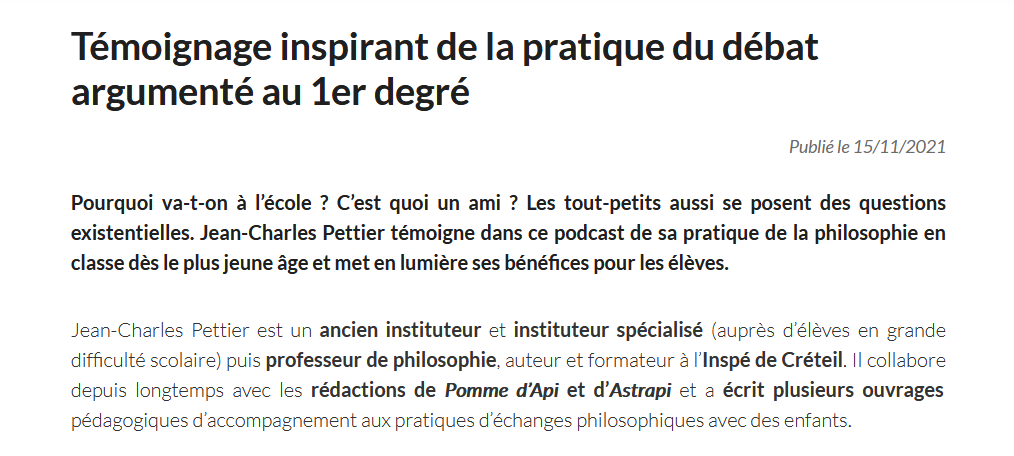 Témoignage inspirant de la pratique du débat argumenté au 1er degré