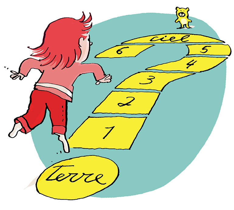 E. C. : La marelle illustre ce chemin qu’on découvre tout au long de sa vie, en sautant d’une case à une autre, d’âge en âge. Le début de la marelle, c’est justement l’âge de la maternelle, où l’on découvre le monde avec des yeux étonnés. Entre 3 et 5 ans, c’est le moment privilégié du questionnement. On commence tout juste à appréhender des concepts. L’enfant, même petit, a une capacité à s’emparer de ces grandes questions : l’origine de la vie, la mort, la justice… Il faut juste lui dire que ces questions ne sont pas faciles, qu’il est difficile d’y répondre, mais qu’il est légitime de se les poser.