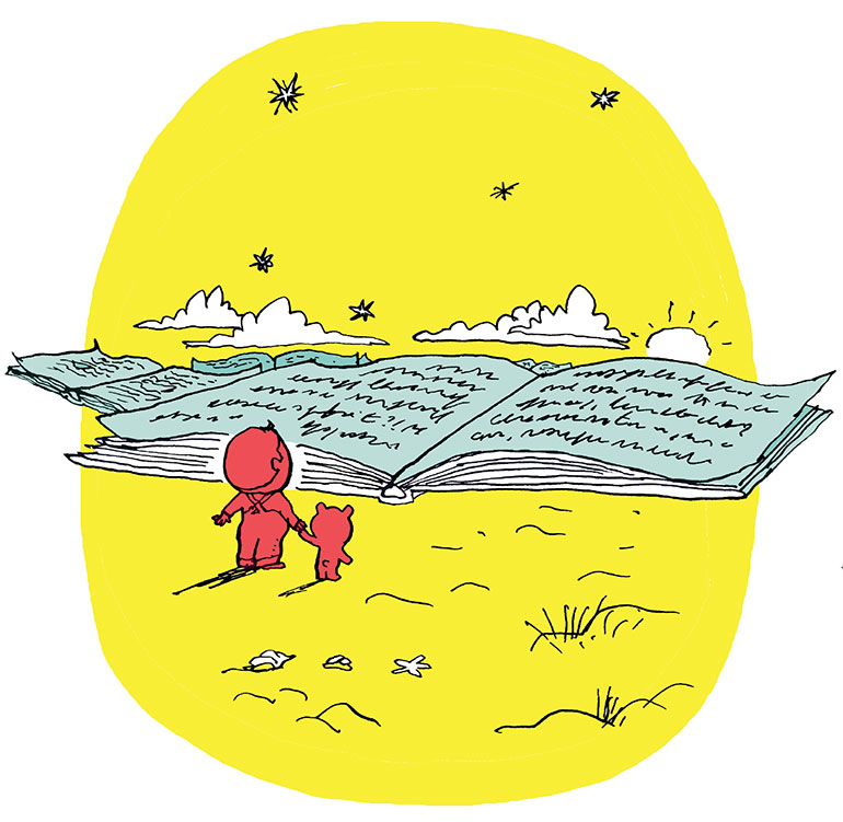 E. C. : Je suis professeur de philo, donc j’ai l’habitude de travailler à partir d’un texte. On ne peut pas apprendre à philosopher sans un texte qui permet une mise à distance. Mais bon, je ne vais pas parler de Kant ou d’Heidegger à des enfants de 4 ans, même si je n’hésite pas à mentionner des noms au passage. Alors, j’ai choisi de passer par la littérature et je l’ai transposée au monde de l’enfance.